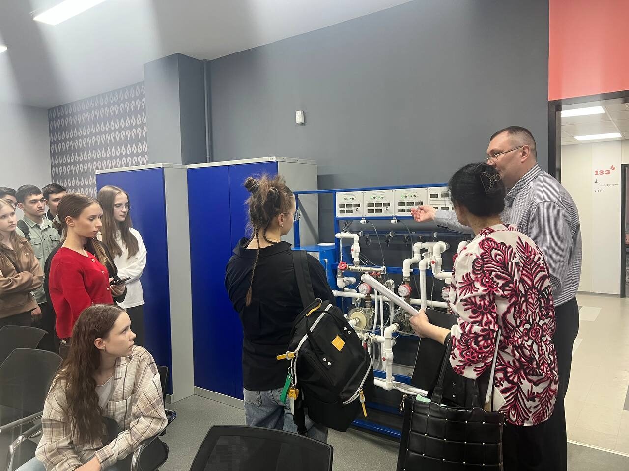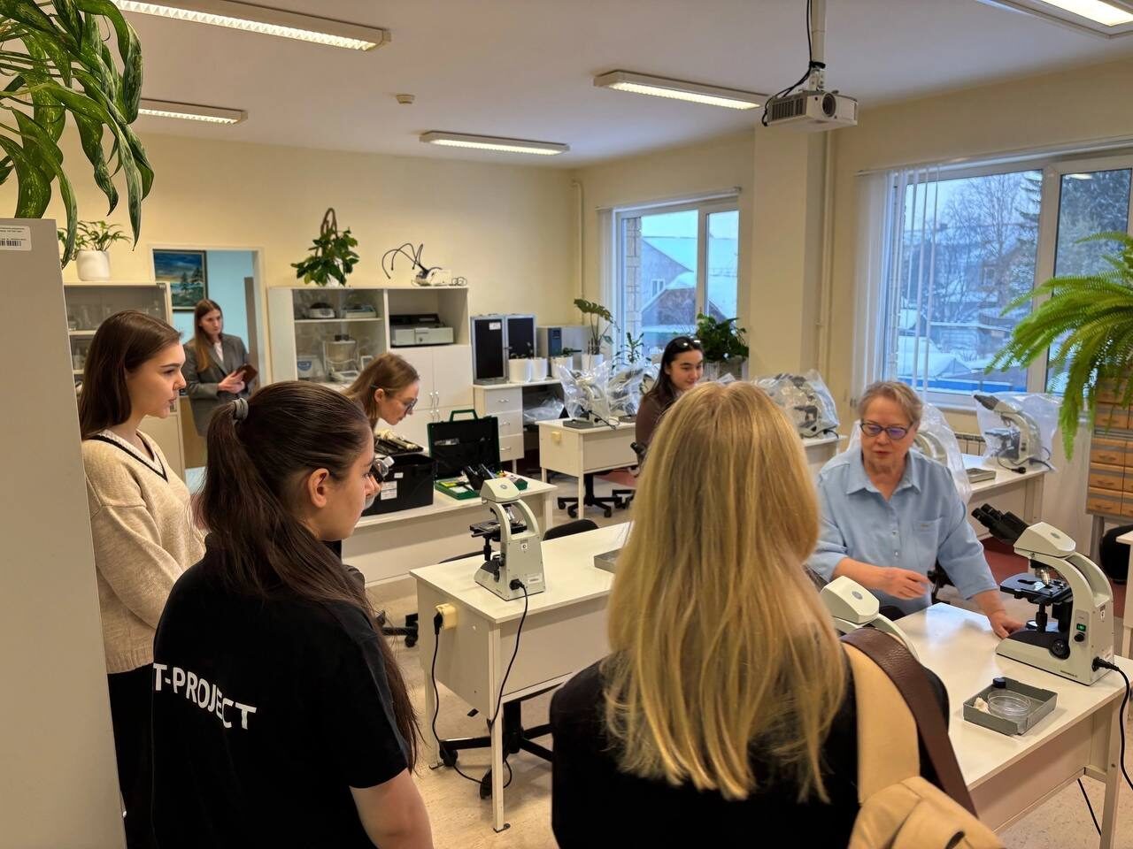 В лаборатории прикладной экологии ребята узнали чем занимаются студенты. Под микроскопом посмотрели конечности пчёлки, узнали чем измеряют влажность воздуха и направление ветра, как происходит очистка сточных вод. Далее посетили лабораторию геологического моделирования, где занимаются изучением месторождений нефти и газа.
