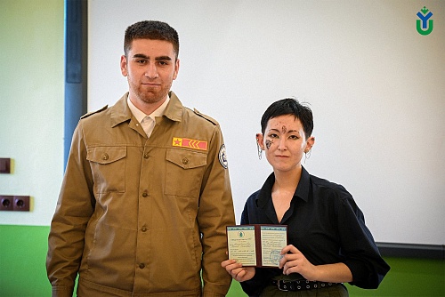 ЦДО Югорского госуниверситета прошла торжественная церемония вручения свидетельств об успешном прохождении курсов дополнительного образования студентам-бойцам Ханты-Мансийского регионального отделения молодежной общероссийской организации «Российские студенческие отряды».