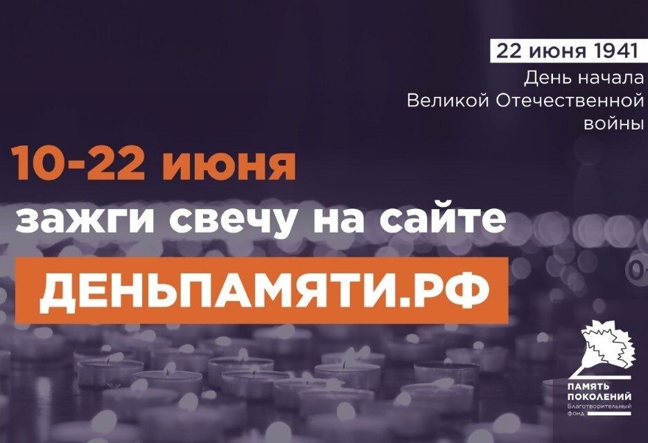 10 июня по всей России стартует онлайн-акция «Свеча памяти». До 22 июня на сайте деньпамяти.рф каждый может зажечь свою виртуальную свечу и почтить память героев Великой Отечественной войны.
