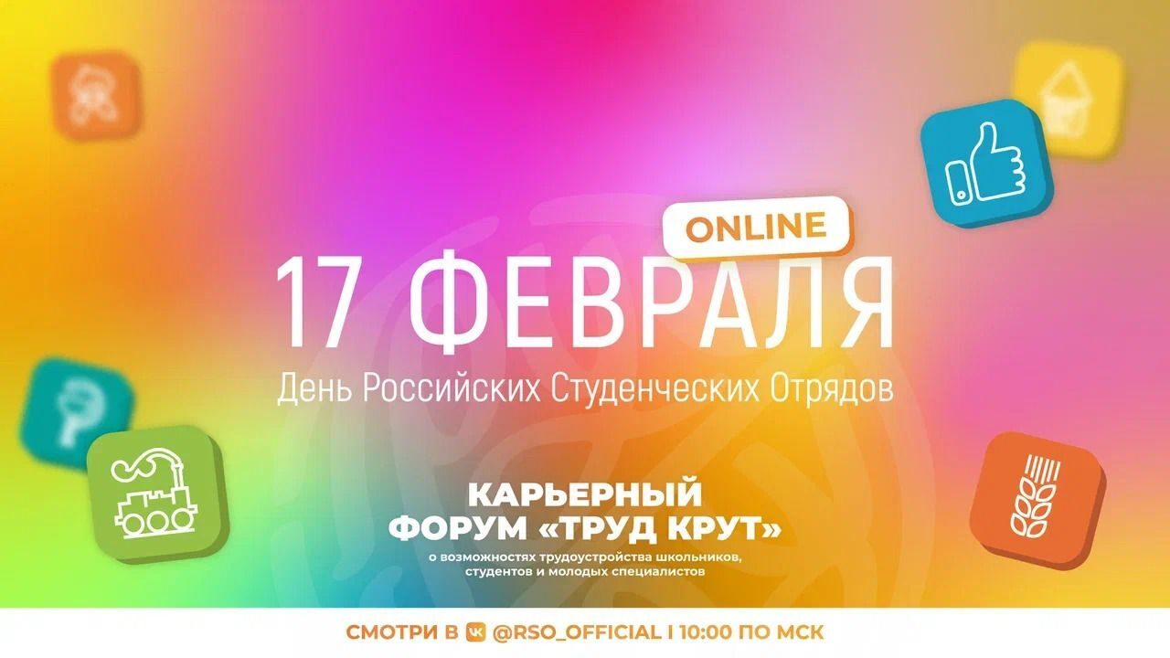 17 февраля 2022 года, в рамках государственного праздника Дня Российских студенческих отрядов состоится карьерный форум «#ТрудКрут». Трансляция форума пройдет в социальной сети