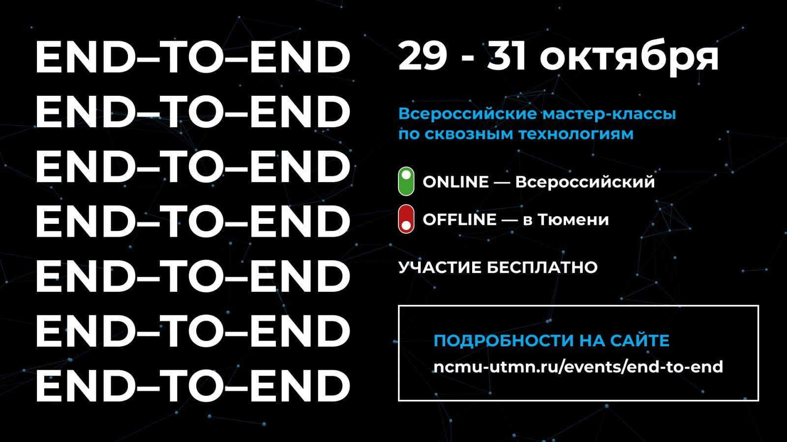 Зарегистрироваться на мероприятие и узнать подробную информацию можно на официальном сайте НЦМУ ТюмГУ: https://ncmu-utmn.ru/events/end-to-end.