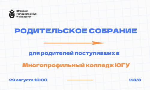 29 августа в 10:00 в 3 корпусе ЮГУ состоится родительское собрание для первокурсников Многопрофильного колледжа.