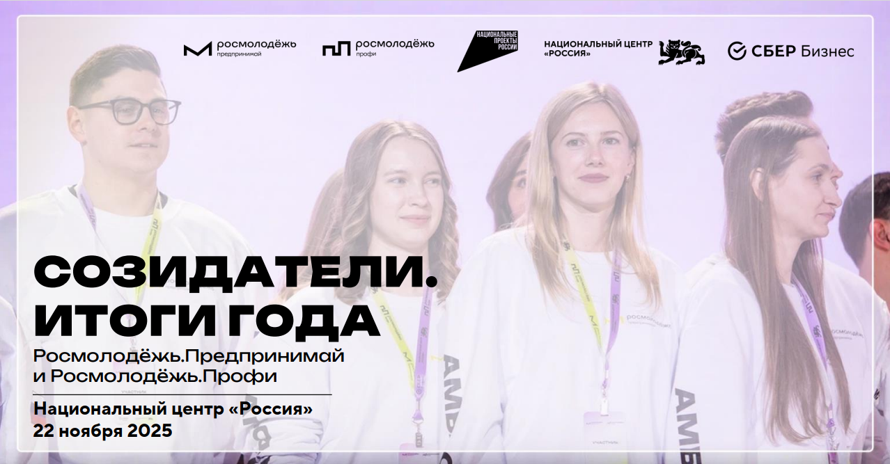 22 ноября 2025 года в Национальном центре «Россия» в Москве пройдет масштабное мероприятие «Созидатели. Итоги года Росмолодежь.Предпринимай и Росмолодежь.Профи».