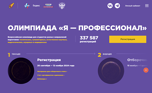 Всероссийская олимпиада студентов «Я — профессионал» — это масштабная площадка для проверки знаний и прикладных навыков студентов российских вузов, а также уникальная система карьерного сопровождения. Участие в олимпиаде «Я — профессионал» — это не только шанс проявить себя и доказать всем высокий уровень знаний, но и возможность обратить на себя внимание лучших работодателей, поступить в университет мечты и начать карьеру в профильной компании.