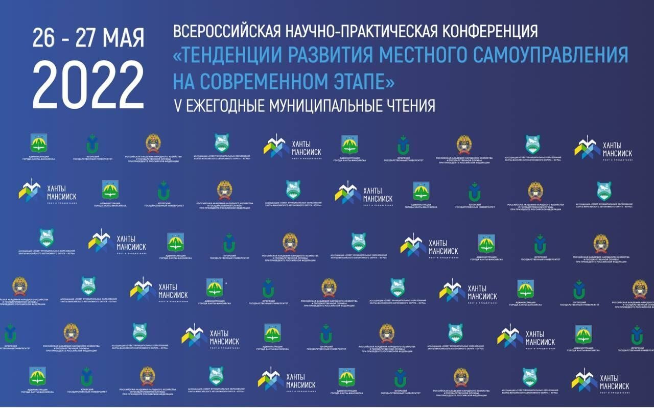 26-27 мая 2022 года в Ханты-Мансийске Всероссийской научно-практической конференции с международным участием «Тенденции развития местного самоуправления на современном этапе» (V ежегодные муниципальные чтения).