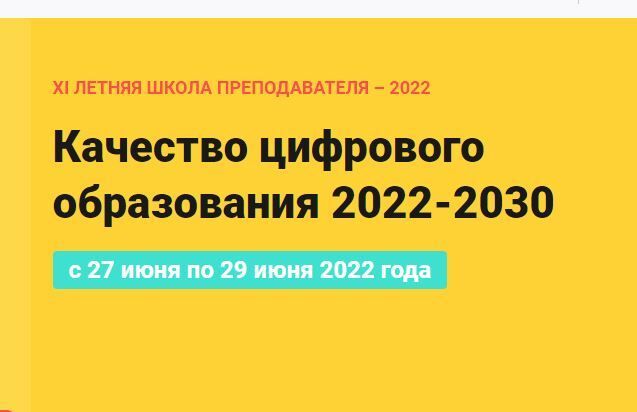 С 27 по 29 июня 2022 г. пройдет XI Летняя школа преподавателя «Качество цифрового образования 2022—2030» — педагогическая научно-практическая онлайн-конференция с международным участием, организованная Образовательной платформой «Юрайт».