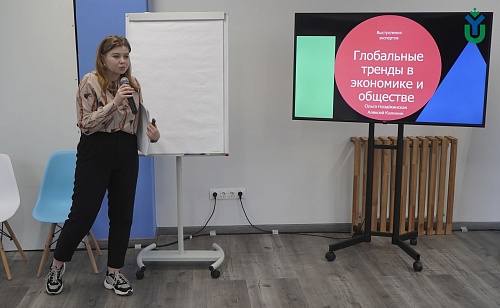 В «Точке кипения» Ханты-Мансийска в ЮГУ состоялся семинар специалиста Центра превосходства Ugra Green School Евгении Логуновой. Спикер презентовала итоги первого модуля программы Московской школы управления СКОЛКОВО «Код образовательных программ», в которой принимает участие.