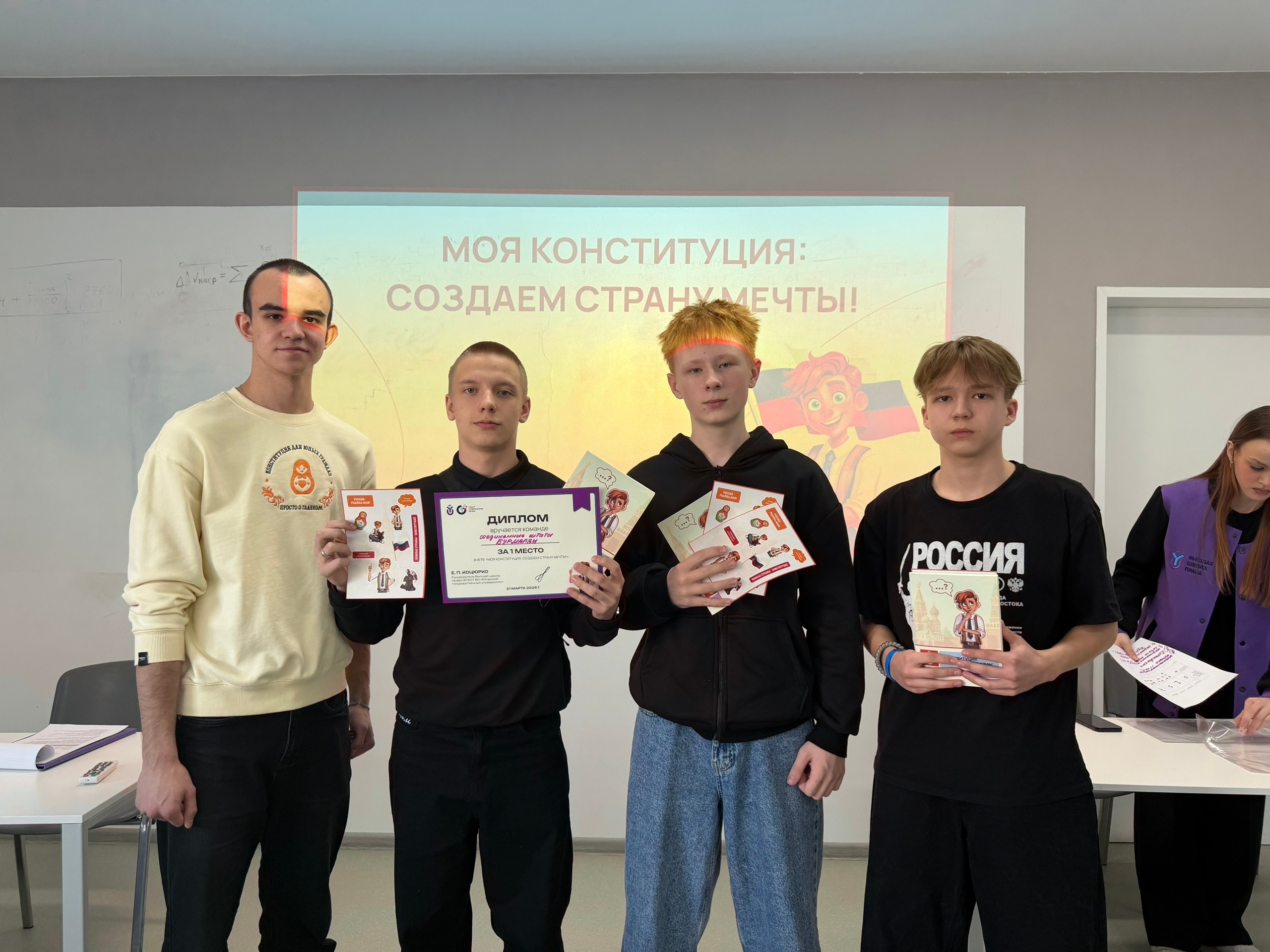 Каждый участник получил памятные призы, а команды-победители — экземпляры адаптированной версии Конституции Российской Федерации.