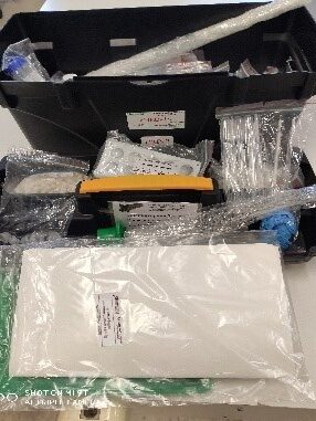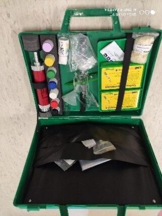 Укладка №1 (фото 5) содержит различную посуду, материалы, принадлежности, средства защиты (штатив, пипетки мерные и капельные, цилиндр мерный, шприц медицинский, бумага индикаторная и фильтровальная, контрольные шкалы образов окраски, воронки фильтровальные и делительные, колбы конические, палочка стеклянная, пробирки колориметрические и мутномерные, стаканчик для выпаривания, термометр, ножницы, стойка-штатив, трубка гибкая, шпатель, защитные перчатки и очки).