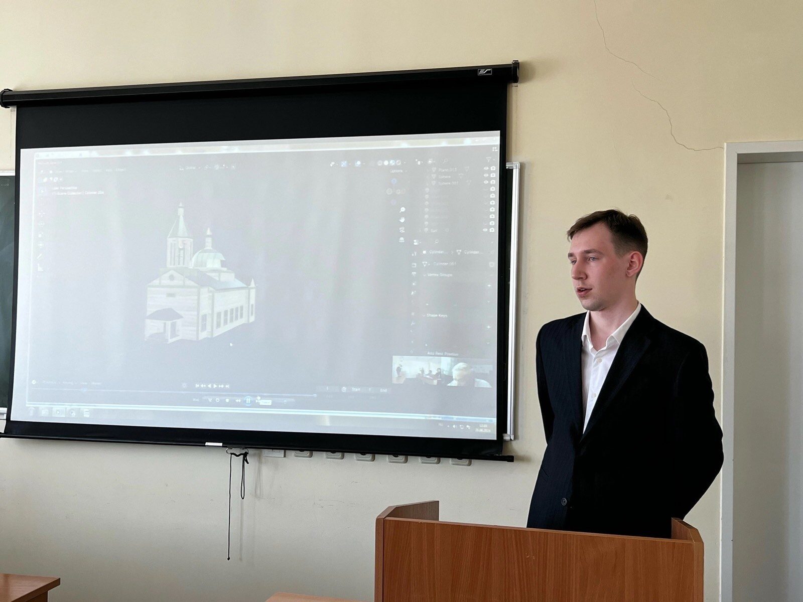 Станислава Панфилова посвящена возможностям использования цифровой среды в сохранении культурного наследия Югры. Магистрантом на основе имеющихся источников осуществлена виртуальная реконструкция Преображенской церкви села Малый Атлым Октябрьского района (церковь сгорела после пожара), включая создание пространственной 3D модели, восстановление архитектурного облика церкви и пространственную привязку. Работа позволила продемонстрировать возможности трехмерных визуализаций в части междисциплинарного подхода к изучению истории и объектов историко-культурного наследия. Результаты исследования переданы в «Центр охраны культурного наследия» (г. Ханты-Мансийск).