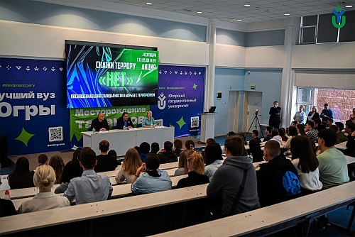 Сегодня в ЮГУ прошла акция «Скажи террору «НЕТ», посвященная Дню солидарности в борьбе с терроризмом, которую организовал отдел по воспитательной работе. На профилактическую встречу со студентами пришли заместитель начальника центра по противодействию экстремизму Управления Министерства внутренних дел Российской Федерации по Югре Алексей Тартынский, консультант отдела профилактики терроризма Департамента региональной безопасности Югры Наталья Тимофеева и член Ханты-Мансийского регионального отделения Ассоциации юристов России Александр Любчак.
