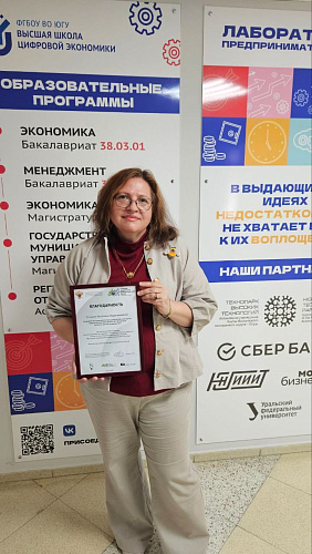 Минобрнауки России выразило благодарность кандидату экономических наук и доценту Высшей школы цифровой экономики ЮГУ Татьяне Ладыженской. Грамота Татьяне Петровне вручена за научное сопровождение конкурсной работы студентов – победителей IV Всероссийского конкурса по истории предпринимательства «Наследие выдающихся предпринимателей России».