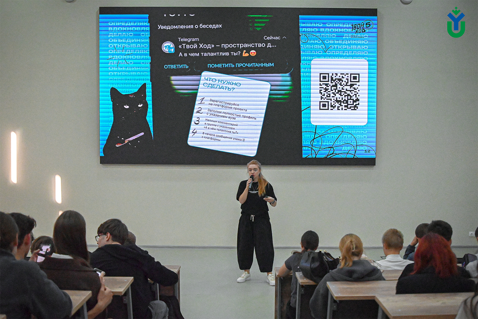 В Югорском госуниверситете состоялась презентация Всероссийского студенческого проекта «Твой Ход», который входит в президентскую платформу «Россия – страна возможностей» и реализуется Федеральным агентством по делам молодёжи (Росмолодёжь) при поддержке Министерства науки и высшего образования Российской Федерации. В рамках осеннего регионального тура сотни студентов смогли узнать, как стать частью единого студенческого сообщества России и развиваться в образовательных и карьерных направлениях.