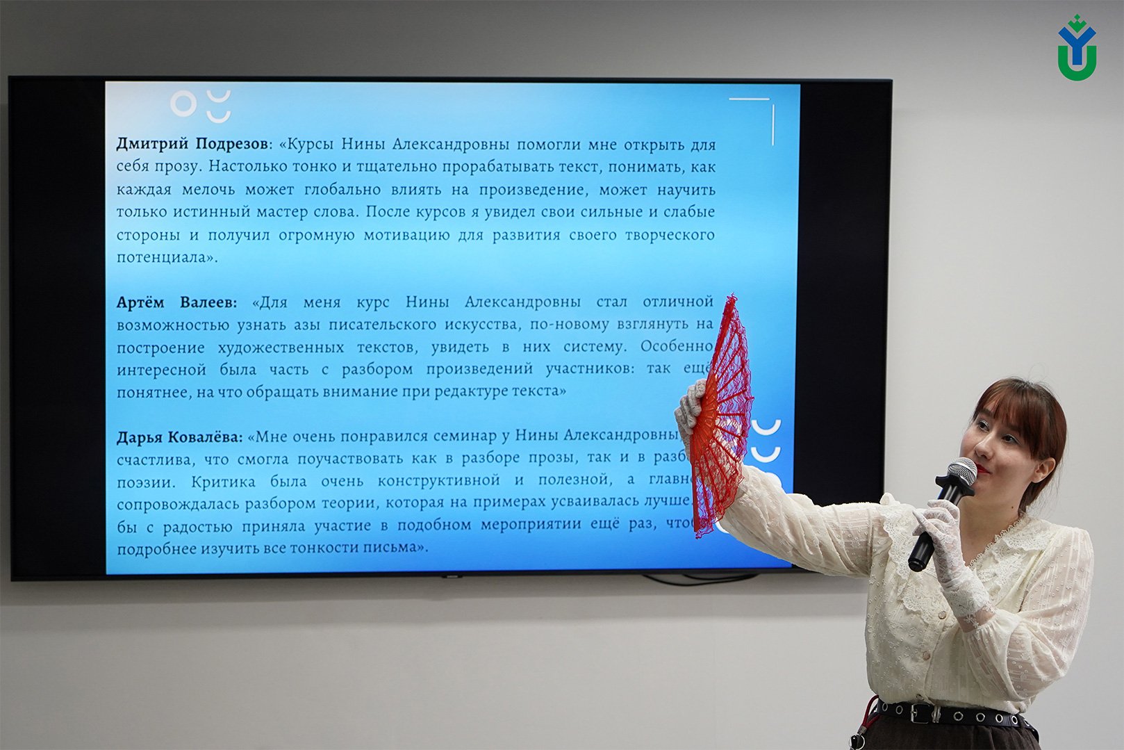 «Курс, который ребята выбрали для нашего общения, очень важный для каждого начинающего автора – умение работать со своими собственными текстами. Меня очень порадовал этот выбор и те вопросы, которые задавали мне ребята. По ним было видно, насколько студенты подготовлены, глубоко погружены в этот процесс – освоение законов художественной речи. Мне хочется пожелать вам больших творческих успехов и открытий, чтобы сбылась ваша мечта – большого осмысленного выхода на своего читателя», - обратилась к начинающим литераторам наставник, автор курса по саморедактированию Нина Ягодинцева.