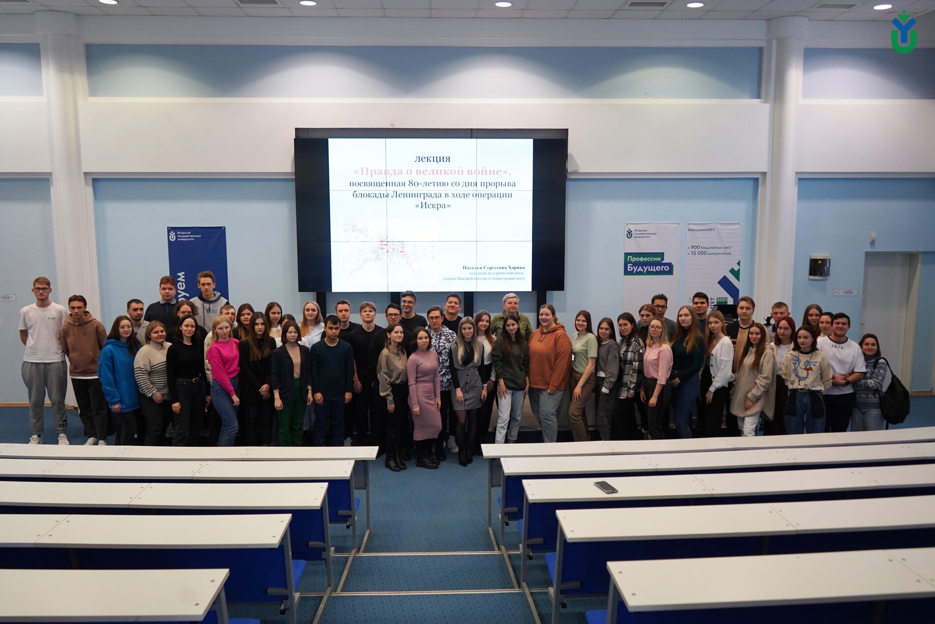 Доцент Высшей школы гуманитарных наук Югорского государственного университета Наталья Харина провела для студентов лекцию «Правда о великой войне», посвященную 80-летию со дня прорыва блокады Ленинграда.
