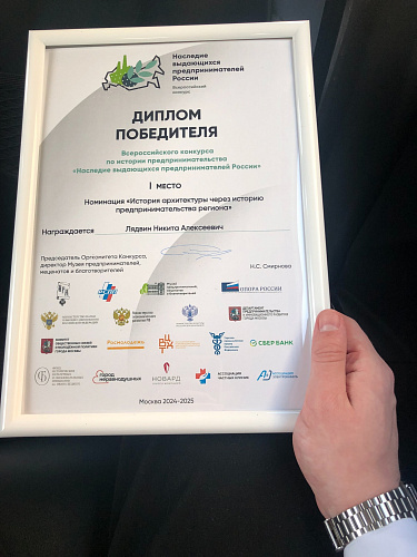 21 апреля в Москве состоялась торжественная церемония награждения IV Всероссийского конкурса «Наследие выдающихся предпринимателей России», на которой студенты Югорского государственного университета Никита Лядвин и Арина Фролова были удостоены победы в номинации «История архитектуры через историю предпринимательства региона».