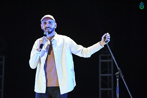 Со стендапом перед студентами выступил выпускник ЮГУ, организатор открытых микрофонов в Ханты-Мансийске Вусал Османов.