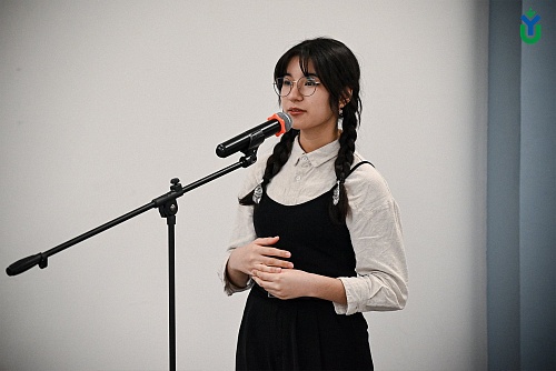 Сезим Омоева, студентка первого курса направления «Социальная работа», редко выступает публично, но, когда она услышала о Поэтическом баттле, она решила бросить себе вызов: «Я выбрала стихотворение И. Никитина «Утро». Оно передавало ту самую необыкновенную атмосферу раннего утра, когда солнце только-только встает. Второе стихотворение было В. Высоцкого «Он не вернулся с боя». Меня очень тронуло это стихотворение и чувства, которые автор вложил в него. Для третьего раунда выбрала стихотворение Сметанина «Хантыйка». Оно живое и бойкое, отлично мне подходит. К сожалению, это произведение мне прочитать не удалось. Было волнительно выступать, так как это мое первое выступление, но чем дольше я находилась на «сцене», тем увереннее себя чувствовала. Был легкий мандраж, боялась ошибиться, но все прошло отлично. Отличный опыт и приятное воспоминание в мою копилочку».