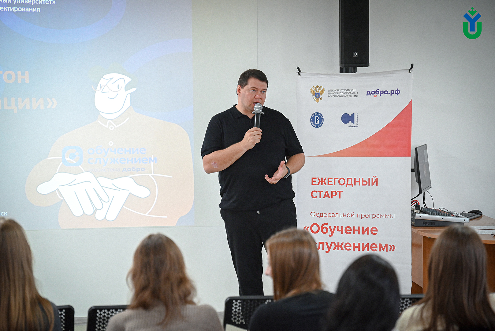 Начальник Управления по молодежной политике Департамента молодежной политик, гражданских инициатив и внешних связей Югры Иван Хлебников открыл церемонию. Он отметил, что в Югре существуют сильные традиции добровольчества, о чем свидетельствует успешное завершение всероссийского форума развития гражданского общества «Добрино». Этот форум собрал участников из более чем 50 регионов страны, предоставив площадку для обмена опытом и знакомства с лучшими практиками некоммерческих организаций, и добровольческих объединений. Добавим, что модераторами Академии «Добрино» стали и наши студенты, подробнее об этом читайте