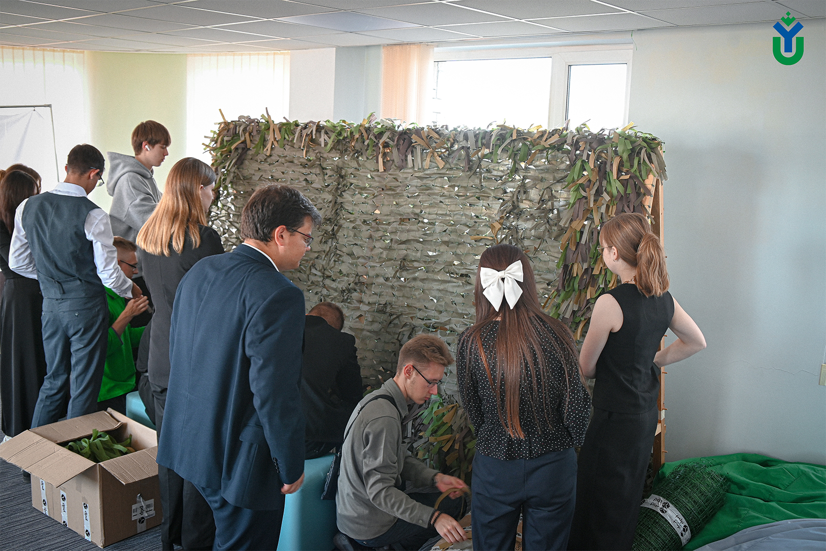 Первая акция – плетение маскировочных сетей. Студенческий штаб передал сеть городскому штабу, над которой трудились с 1 сентября студенты под руководством руководителя Алены Хандыго, и начали работу над новой сетью.