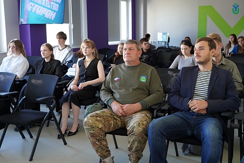 Во втором блоке у обучающихся состоялся мотивационный диалог с Кристиной Филиппенко, руководителем общественной организации помощи военнослужащим «СБОР ХМ», которая рассказала о том, как профессиональный и жизненный путь привел к социально значимой деятельности, какими ценностными ориентирами руководствуется и вкладом в какие позитивные изменения в своем регионе или в стране в целом гордится больше всего.