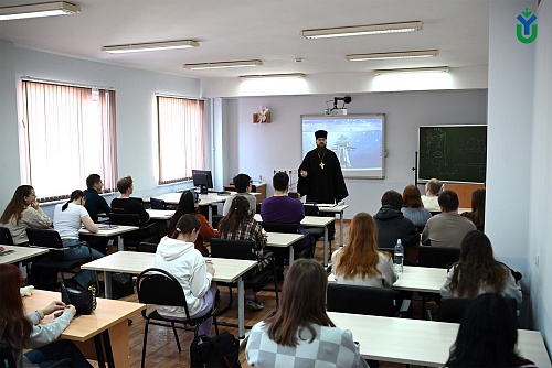 В рамках празднования Дня православной книги в Югорском государственном университете состоялась увлекательная просветительская беседа, посвященная письменности Руси в X-XII веках. Мероприятие провел иерей Вячеслав Фомин, директор Духовно-просветительского центра.