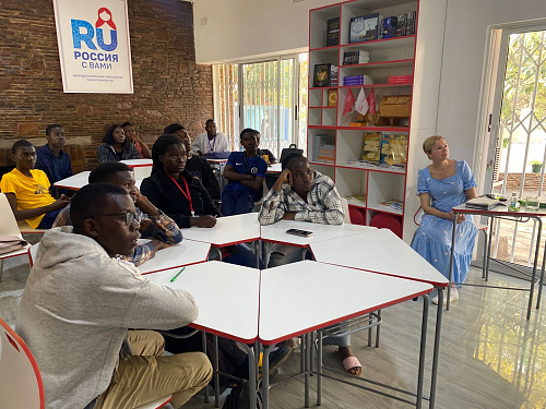 Выпускник ЮГУ Силунгве Нкумбу, амбассадор нашего университета, встретился с потенциальными абитуриентами в Русском доме города Лусака (Замбия). Он поделился своим личным опытом пребывания в России: рассказал, как преодолевал трудности и открывал новые горизонты. Сегодня Нкумбу яркий представитель