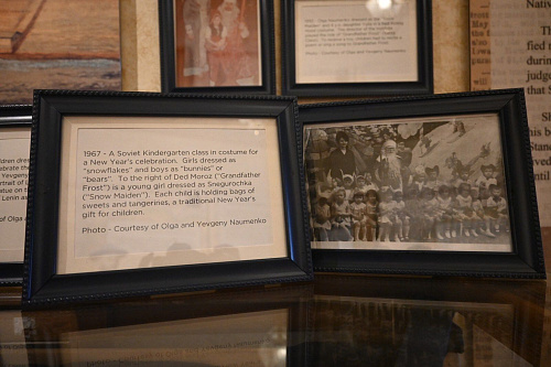Для участия в экспозиции югорские ученые подготовили фотографии по тематике «Детские лица в Новый год. Сибирь. Россия. Вторая половина XX века». Идея такой фотовыставки – показать, как с 1955 г. по 1991 г. в советском обществе при праздновании Нового года происходил отход от идеологической составляющей, как менялись костюмы, подарки и, конечно, детские лица. Помощь в подготовке материалов для выставки оказали преподаватели кафедры истории, философии и права ЮГУ Татьяна Ткачева, Наталья Харина, Татьяна Иващенко. Они нашли в личных архивах свои детские фотографии. Также были использованы материалы с сайта магистранта ЮГУ Андрея Рябова Остяко-Вогульск.РФ. Всего было подобрано 15 фотографий советского периода, к каждой из которых профессора написали историко-психологический комментарий, включенный американской стороной в экскурсию по выставке.
