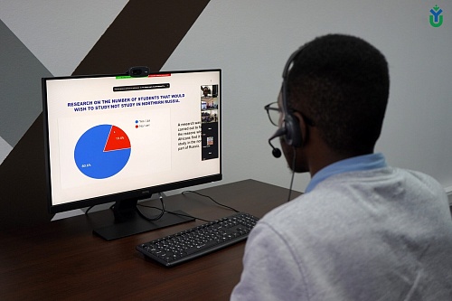 Студенты ЮГУ Нкумбу Силунгве и Мэрвис Марриам Пири выступили с докладом «Национальное землячество студентов из Африки в Югре», где рассказали об уникальном молодежном сообществе африканских студентов, проживающих и обучающихся на севере России. Они рассказали о возможностях обучения, проживания и внеучебной деятельности, предоставляемых университетом, а также рекомендовали будущим африканским абитуриентам не бояться холодов и как можно быстрее присоединяться к их дружной югорской компании.