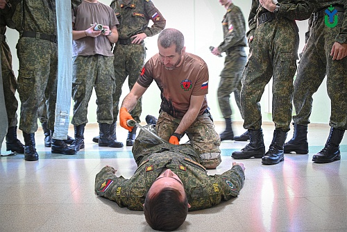 Для курсантов Военного учебного центра при Югорском государственном университете провели занятие по контролю кровотечения и оказанию первой помощи пострадавшим в мирное и военное время.