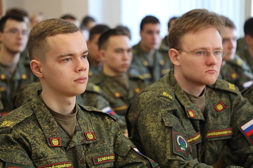 В честь Дня воссоединения Крыма с Россией для курсантов Военного учебного центра Югорского государственного университета провели патриотический час.