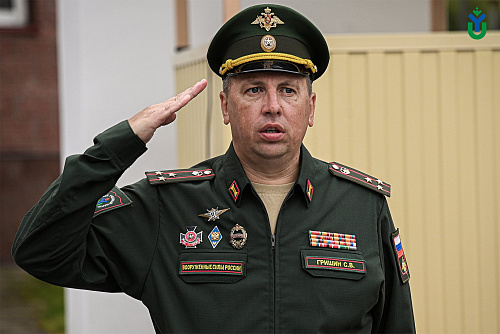 Начальник Военного учебного центра полковник Сергей Гришин подвел итоги прошлого учебного года и отметил, что курсанты, перешедшие на второй год обучения, являются примером для первокурсников, которые успешно прошли отбор для службы в ВУЦе:
