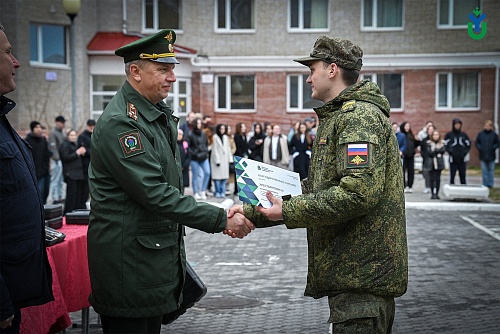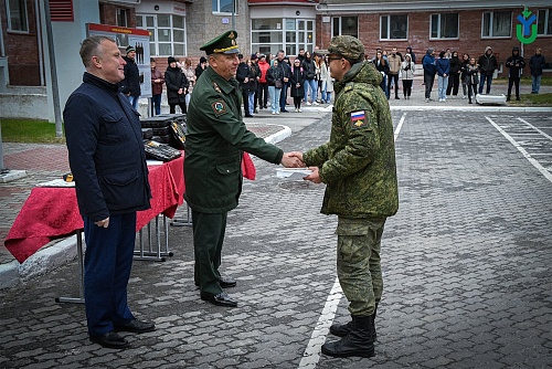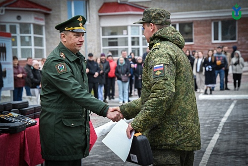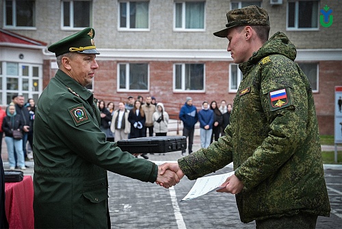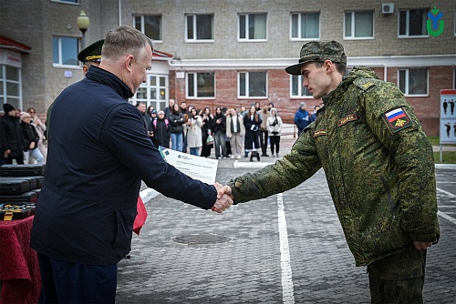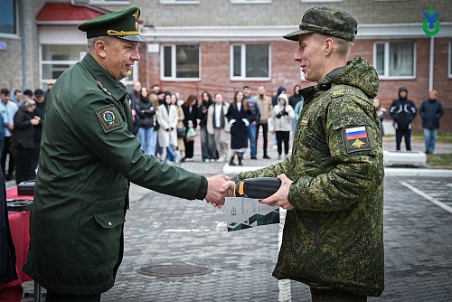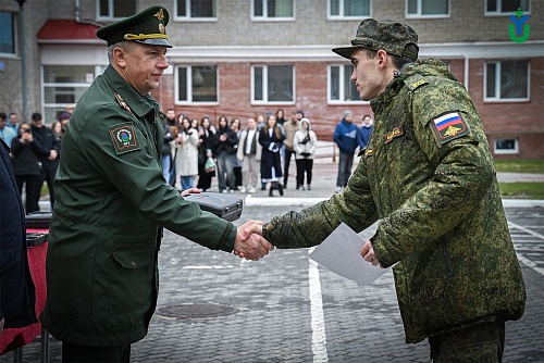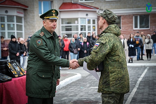 26 мая на строевом плацу Югорского госуниверситета состоялось торжественное мероприятие, посвященное курсантам, успешно завершившим обучение в Военном учебном центре по программам военной подготовки сержантов и солдат запаса для Управления ракетного топлива и горючего Департамента ресурсного обеспечения Министерства обороны Российской Федерации. Это был первый набор в истории ВУЦ, созданного на базе вуза два года назад.