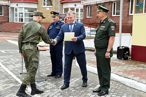 Поздравить курсантов с началом военной подготовки и подвести итоги прошлого года пришел ректор ЮГУ Роман Кучин. В своем приветственном слове он отметил, что военная подготовка играет важную роль в формировании лидерских качеств, дисциплины и ответственности у молодого поколения: «Югорский госуниверситет преобразовался с вашим появлением. Вы внесли значительный вклад в развитие патриотического движения не только в вузе, но и регионе. За прошедший учебный год ВУЦ посетило много гостей. На его базе проходили курсы повышения квалификации, различные сборы для допризывной молодежи. Радует, что ребята увидели перспективы, кем могут быть, поступив в наш университет. Вы наша гордость! Благодарю вас за проявленную инициативу, за вашу активную жизненную позицию».