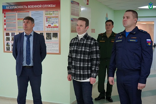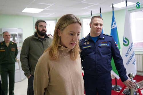 Военный учебный центр Югорского государственного университета посетила директор Учебно-методического центра военно-патриотического воспитания молодежи «Авангард» – Дарья Борисова. Участниками встречи также стали: ее заместитель – Виктория Бурдак и директор Департамента образования и науки Ханты-Мансийского автономного округа – Югры – Алексей Дренин.