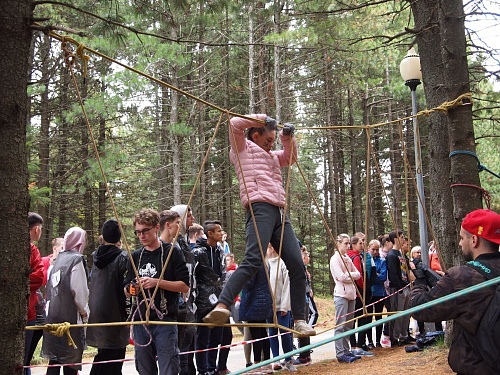 Во время выполнения второго задания «Прохождение туристической полосы препятствий» первокурсники смогли ощутить себя настоящими экстремалами, они продемонстрировали хорошую физическую подготовку, сноровку и сообразительность.