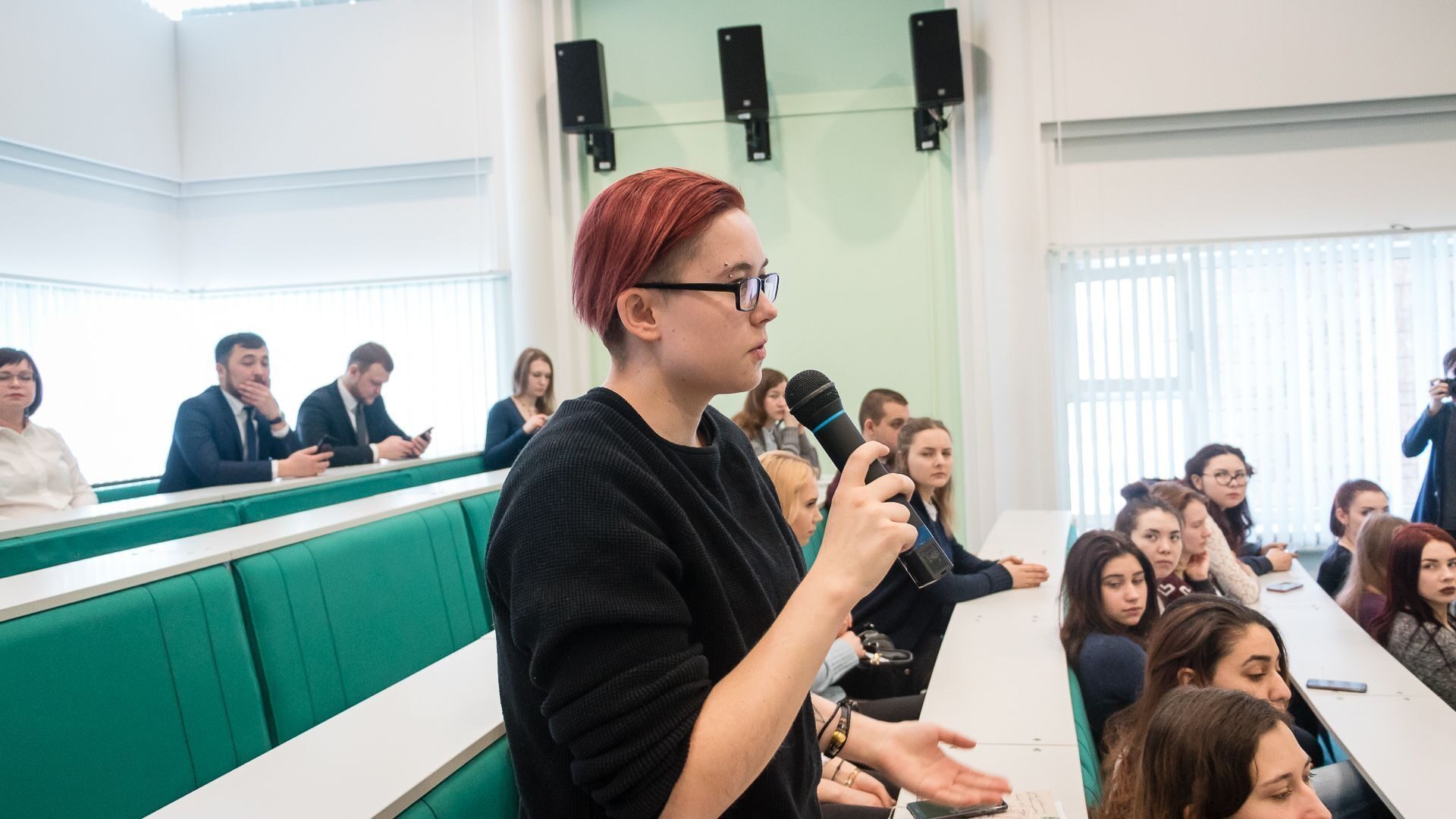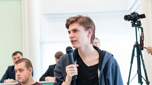 Ребята, занимающиеся в творческих коллективах, спросили: «Какие меры поддержки должны оказывать талантливой молодежи?» На что спикер ответил: «Обращаясь к личному примеру, скажу, что когда у нас была студенческая рок-группа, то руководство университета выделяло нам для репетиций темную коморку в подвале. Мы были рады. Самое важное – это поддержка самой инициативы и создание условий для занятия творческой деятельностью».