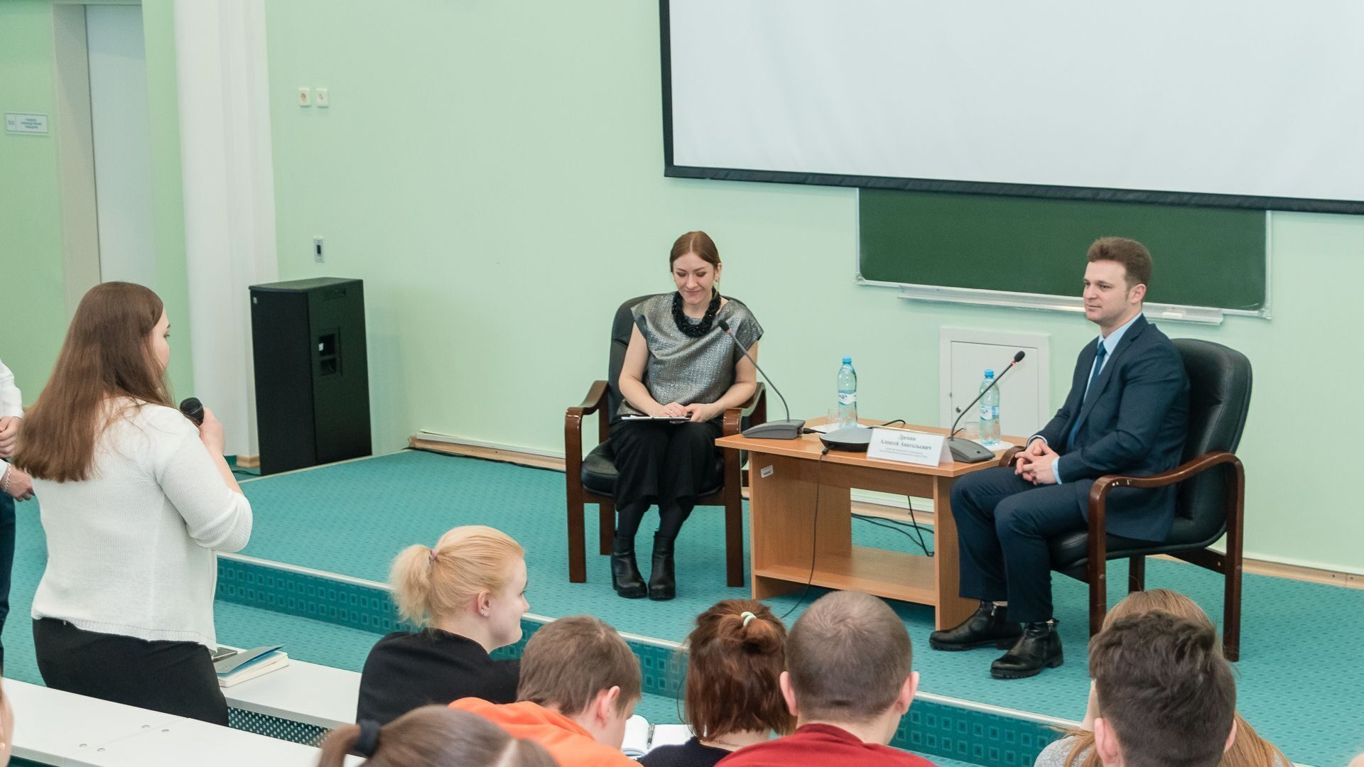 Студенты интересовались увлечениями руководителя департамента. Оказалось, что будучи студентом он вел насыщенную жизнь – погружался в химию, играл в КВН за команду «От фонаря», был музыкантом и исполнителем в рок-группе «Знак четырех», занимался боксом и кикбоксингом. А любимая книга Алексея Дренина – это «Мастер и Маргарита» Булгакова.