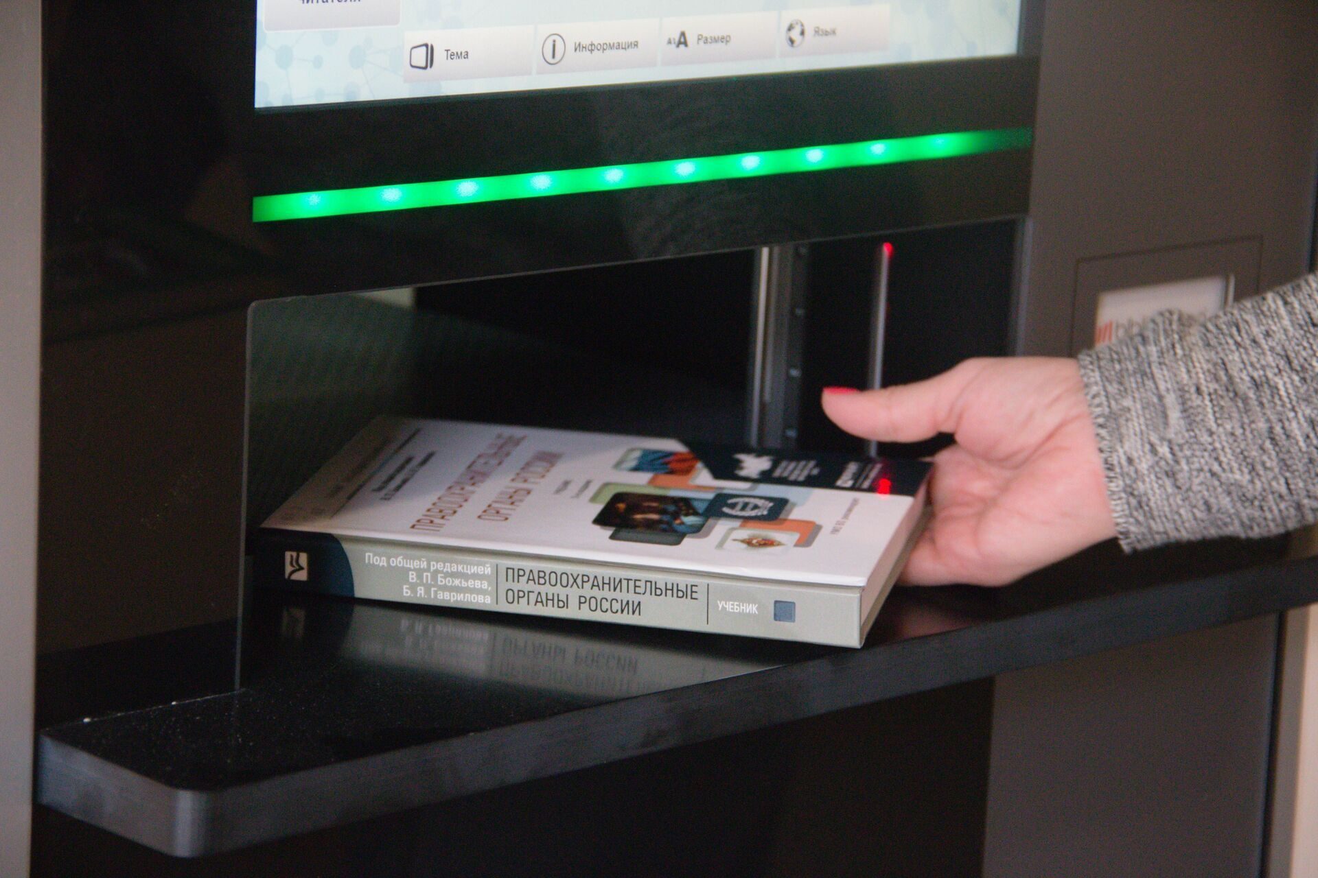 Оборудование способно просканировать книги в стопке с помощью радиочастотных волн, что значительно экономит время при их оформлении. Кроме того, техника принимает книги к возврату, списывая их с читательского билета, и следит за тем, чтобы они несанкционированно не были вынесены из здания библиотеки. При попытке пронести неоформленную книгу электронные ворота издают звук сирены и окрашиваются в красный цвет.