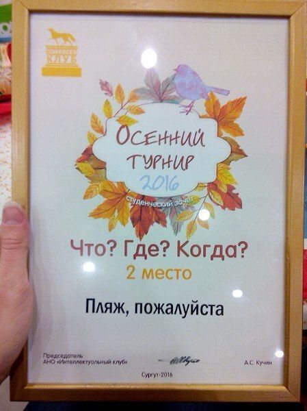 – Мы новая команда, и особо ни на что не рассчитывали, ехали поиграть, – говорит капитан команды Дарина Васильева. – Главное ведь не победа, а участие. Второе место стало для нас приятной неожиданностью. Скажу больше, для меня второе место – восхитительный результат. Приятно знать, что твоя команда может входить в тройку не только у себя в городе, но и за его пределами. Тем более, что в студенческом зачете было большое количество команд, но мы сделали это! Надеемся выступить и на зимнем турнире, и на кубке Югры в мае.