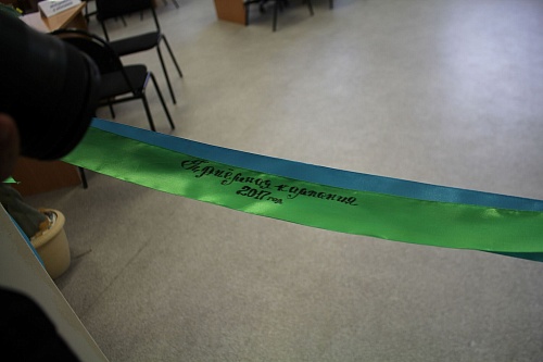 Первый проректор Югорского госуниверситета Роман Кучин и проректор по экономическому развитию Вадим Исламутдинов символически открыли Приемную кампанию ЮГУ – 2017, перерезав ленточку на входе в аудиторию.