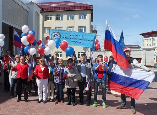 Студенты и сотрудники Югорского госуниверситета приняли участие в праздничном шествии.