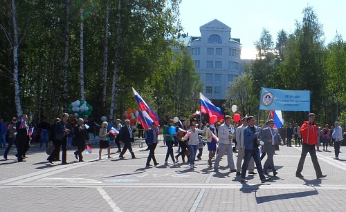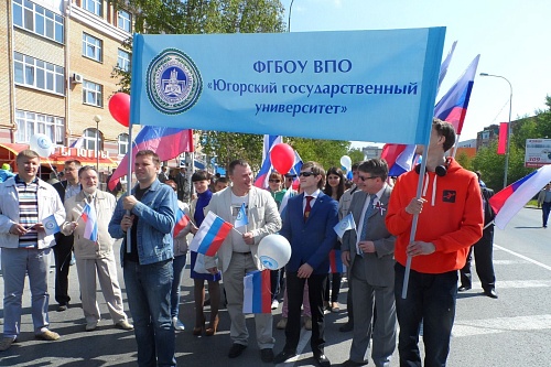 Директора институтов, сотрудники и волонтеры Югорского государственного университета плечом к плечу прошествовали по праздничным улицам Ханты-Мансийска и приняли участие в праздничной программе «Мой край - моя Россия!».