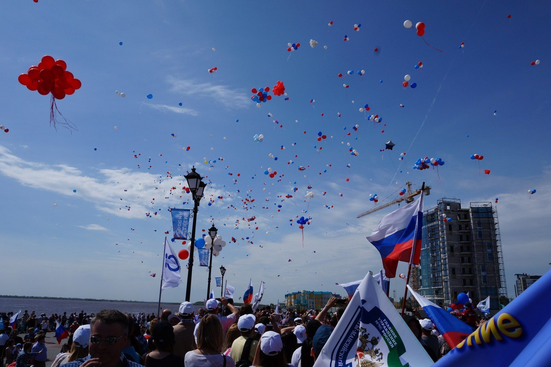 На сцене девять жителей Ханты-Мансийска из рук Губернатора Югры получили паспорта граждан Российской Федерации. Торжественная часть церемонии открытия праздника завершилась парадом речных судов. Праздник продолжила концертная программа «Мой город! Моя Россия!». Параллельно для жителей работали развлекательные интерактивные зоны.