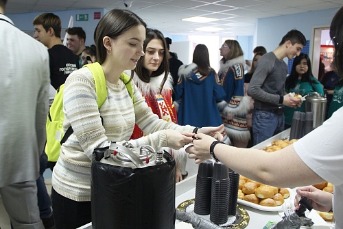 На большой перемене в холле учебного корпуса была организована праздничная площадка, где прошел конкурс саней, а Центр народов Севера ЮГУ создал этнофотозону. Угощения для праздника предоставил ресторан «PapaSong».