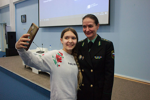 Гостья поделилась своей историей о том, как выбрала эту профессию. Оказывается, еще в школе она готовилась стать юристом, посещала подготовительные курсы Красноярского госуниверситета, но летом вдруг поехала поступать в театральный и провалилась. Пошла работать на завод «Химволокно» лаборантом химанализа. Через год поступила в КГУ на юриспруденцию, но заочное отделение. А еще через год стала интересоваться, куда можно пойти работать по специальности, имея за плечами один курс обучения. Оказалось – судебным приставом. Так шаг за шагом она познавала секреты профессии, именно это позволяет ей глубоко разбираться в процессах права и правоприменения, вникать в каждую конкретную ситуацию, быть настоящим профессионалом своего дела.