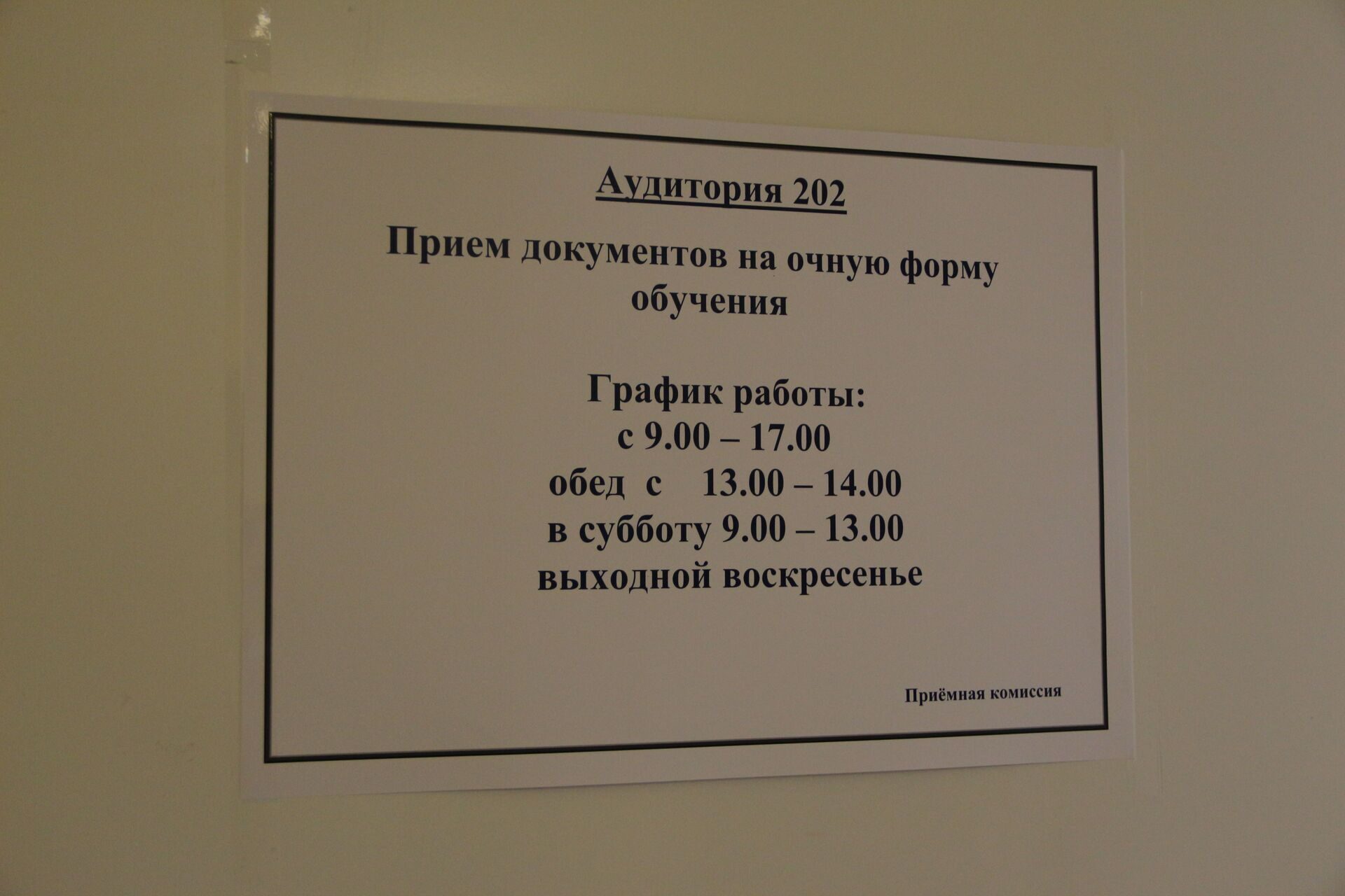 Сегодня состоялась приемка «объекта». Представители ректората убедились в полной готовности сотрудников начать работу по приему документов от абитуриентов. К началу приемной кампании в помещениях приемной комиссии проведены: косметический ремонт и оснащение необходимым техническим оборудованием.