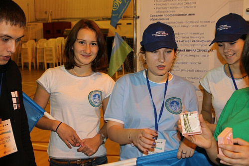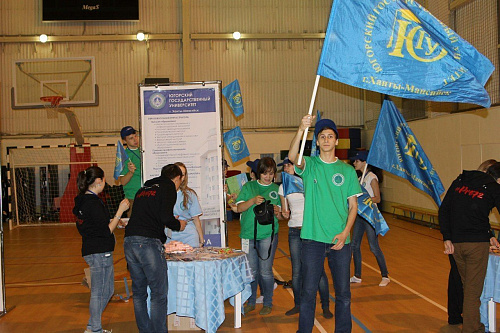 Среди десяти вузов УрФО, которым выпала честь презентовать свое учебное заведение, был и Югорский государственный университет. «Презентация проходила в спортзале, у каждого вуза был свой выставочный стенд или баннер и стол. На этой площадке и нужно было презентовать наш университет. Наш стенд был самым популярным. Во-первых, потому что мы были единственной делегацией, которая привезла гимн своего университета, который транслировался в зале в течение мероприятия, и все присутствующие с удовольствием его пели. Во-вторых, мы устроили танцевальный баттл. Студентам, сумевшим повторить движения, задаваемые нашими ребятами, мы дарили сувениры с символикой ЮГУ. В третьих, мы были в футболках с аббревиатурой ЮГУ. Но самое главное – это то, что наша презентация была сделана с любовью к нашему университету», – рассказывают участники презентации.