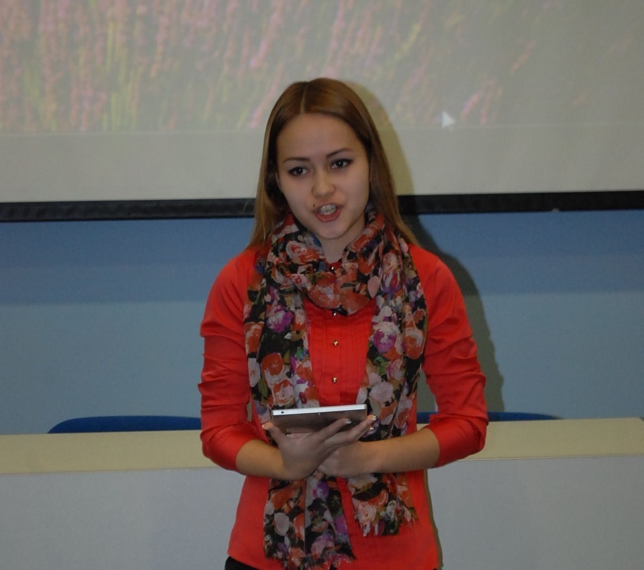 Елена выступила с эмоциональной речью и отметила, что гордится тем, что учится в Югорском государственном университете у лучших преподавателей и намерена сделать ЮГУ брендом.
