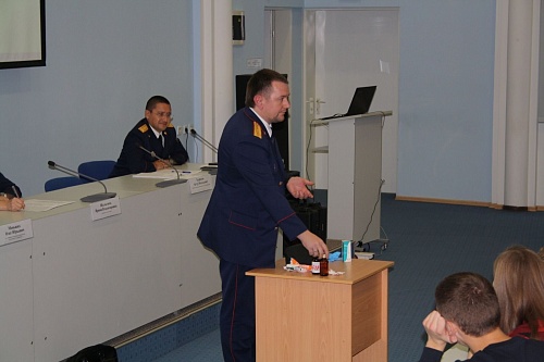 Перед началом беседы ребятам показали фильм об истории создания Криминалистической службы. Сотрудники отделов криминалистики и кадров следственного управления: Ильдар Шаймухаметов, Артур Трефилов и Ирина Шалыгина рассказали студентам об особенностях работы следователей и следователей-криминалистов, о практике привлечения студентов в качестве общественных помощников следователей, обсудили с ними вопросы, связанные с поступлением граждан на службу в систему Следственного комитета России, в том числе о социальных гарантиях для сотрудников, о требованиях, предъявляемых к кандидатам на службу, и основаниях, препятствующих назначению на должности сотрудников СКР.
